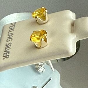 Citrine Dainty 5mm Stud Earrings Round Cut Sterling Silver November Birthstone