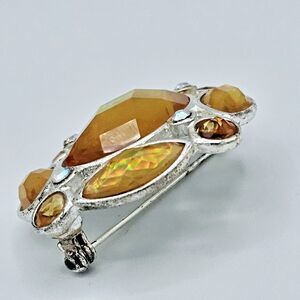 Citrine Jeweled Brooch Vintage Fire Gem AB Faceted Yellow Estate Jewelry Pin
