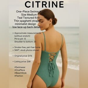 Citrine One-Piece Swimsuit Size Small Teal Textured Knit Size Small