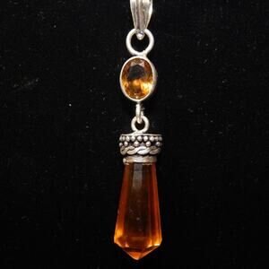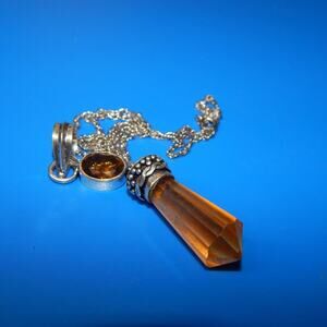Citrine Prism Silver Plated Pendant with 925 Chain Necklace