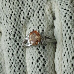 Citrine Ring 9mm Sterling Silver 925 Engagement Ring Simulated Diamond Accents