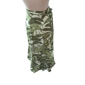 Citrine Tate Wrap Round maxi skirt Large Green Hawaiian Tropical Dreams