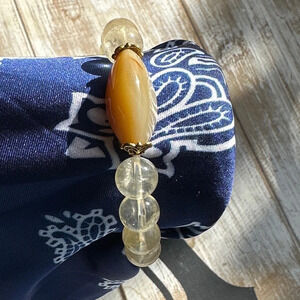 Citrine and Agate beaded gold bracelet/maximalism/chunky/pastel