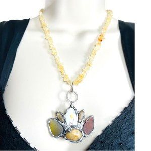 Citrine and Sea Glass Artisan Pendant Soldered & Vintage Citrine Chip Necklace .
