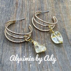 Citrine charms gold bohemian hoops statement earrings/Abundance stone un…