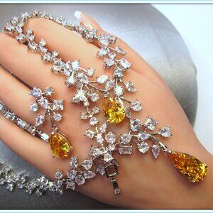Citrine pear cut gemstone ladies Necklace Earrings Set For Brides party Weddings