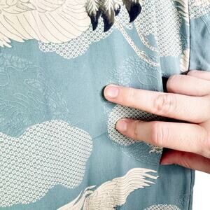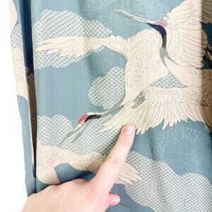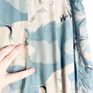 Citron 100% Silk Novelty Bird Print Wide Leg Cropped Gaucho Flowy Pants Small