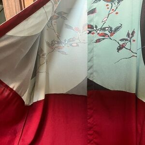 Tags: citron stitch fix women’s plus duster kimono coverup long coat lightweight sheen shiny red green blue blossom Asian Japanese geisha formal overcoat mature modest church wedding date formal event round neck 3/4 sleeve maroon birds