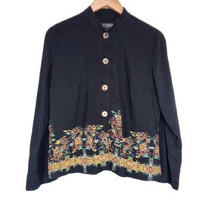 Citron Dragon Tunic Blouse Silk Linen Black Asian Oriental Designer Art To Wear