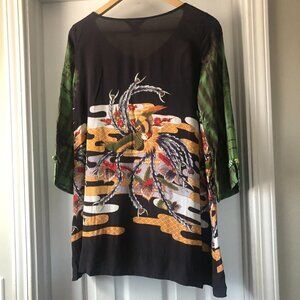 Citron Santa Monica Asian Print 3/4 Sleeve Blouse size S Tunic