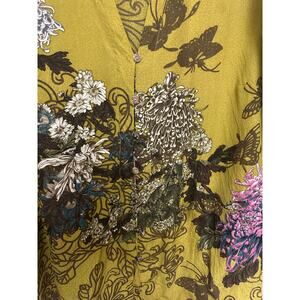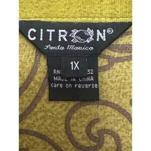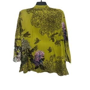 Citron Santa Monica Blouse Top Womens 1X Silk Blend Floral Lime Green V-Neck