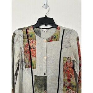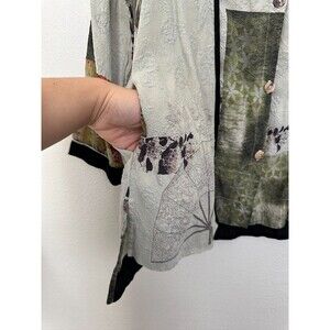 Citron Santa Monica Button Front Silk Blouse Abstract White Black Women's Medium.