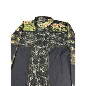 Citron Santa Monica Floral Peacock Bird Print 100% Silk Long Kimono Size 3X