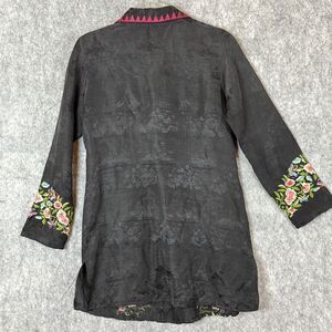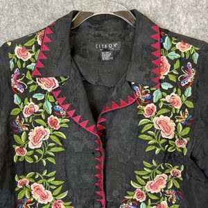 Citron Santa Monica Linen Silk Button Jacket Asian Brocade Floral Embroidered XS
