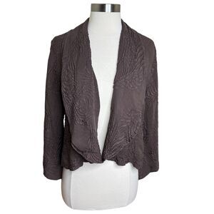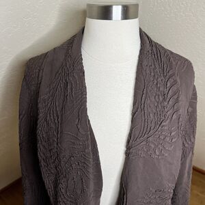 Citron Santa Monica Open Cardigan Womens Large Brown 100% Silk Textured Flowy