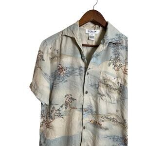 Citron Santa Monica Silk Asian Sea Explorer Embossed Print Mens Small