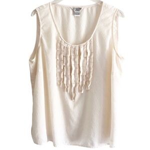 Citron Santa Monica Silk Ruffle Detail Sleeveless Blouse Off White Size 1X