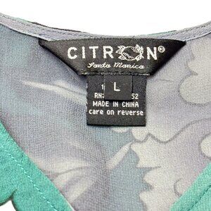 Citron Santa Monica Teal Silk Floral Print Kimono Inspired Blouse