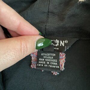 Citron Santa Monica Women XL Black Cream Pink Embroidered Floral Silk Jacket