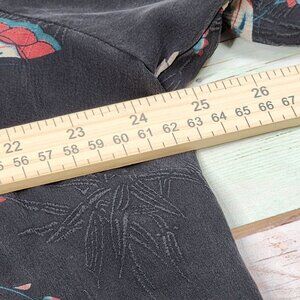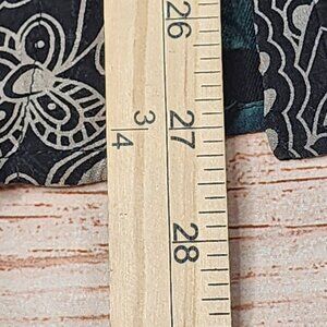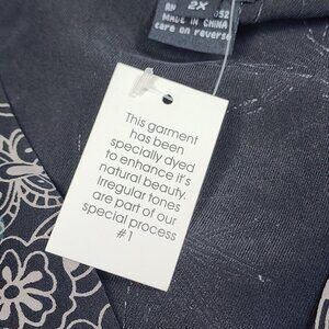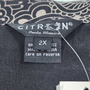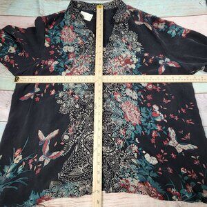 Citron Santa Monica Womens 2X Black Floral Silk Tunic Top With Ornate Button Det