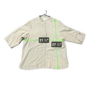 Citron Santa Monica Womens Olive Green Silk Button-Up 3/4 Sleeve Blouse Sz 1X