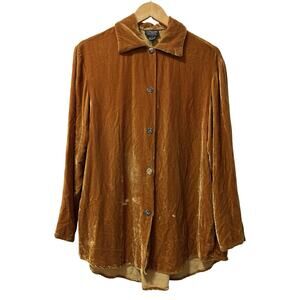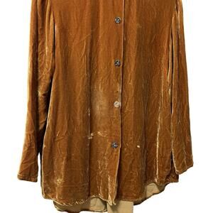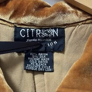Citron Santa Monica Womens Silk Blend Velvet Button Up Top Size S Mustard Luxe