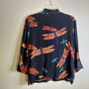 Citron Santa Monica silk dragonfly print button down blouse sz S