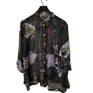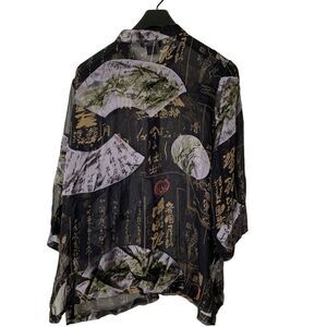 Citron Santa Monica Bird Asian Inspired Semi Shear blouse top women's size 1X