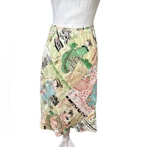 Citron Santa Monica Sz M Pull-On Silk Elastic Waist Asian Skirt