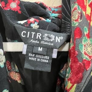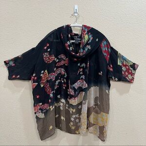 Citron Womens Multicolor Cowl Neck Short Sleeve Silk Blouse Asian Fans Boho Sz M