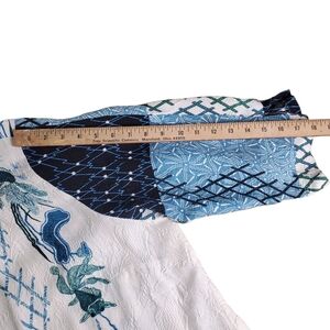 Citron Women's Silk Blue and White Patchwork Patterned Button-Up Shirt. O/S