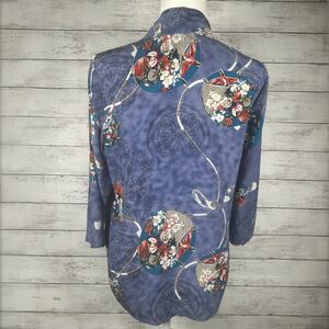Citron Santa Monica Smoke Blue Floral Open Front Silk Jacket Size Medium Petite