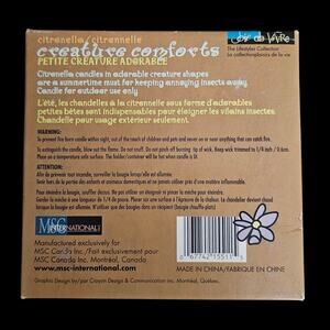 Box reads: “Citronella candles in adorable creature shapes are a summertime must for keeping annoying insects away”