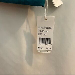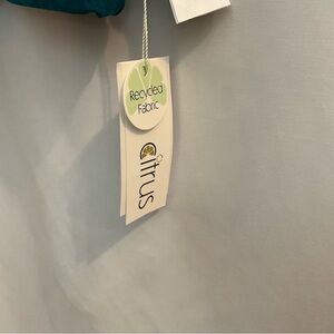This Citrus bikini swim top is brand new and has the original tags attached. The color is jade and is size XS. It is made with recycled fabric.
