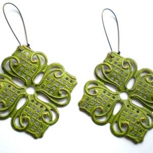 Citrus Green Hand Painted Lotus Filigree Earrings