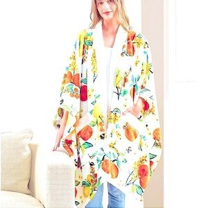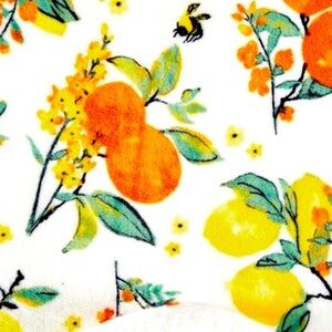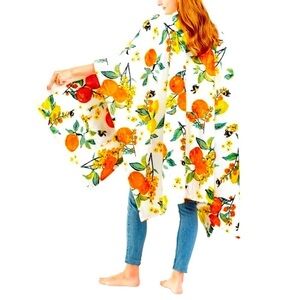 Cheerful + Vibrant blanket poncho orchard of oranges, lemons bumble bees buzzing around.