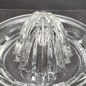 Citrus Reamer Clear Ribbed Glass Juicer with Thumb Tab Handle Vintage.