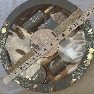 This elegant set features soothing scents and comes in a stylish gold and gray packaging.