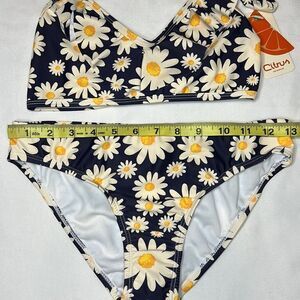 Citrus Swim Girls Navy Blue Daisy Print Bikini Scrunchie Set Size 16