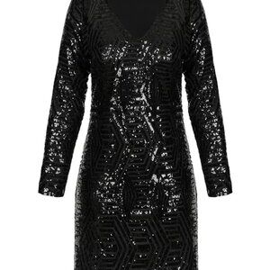 Just in time for the holiday season! The Bright Light Dress makes a glittering statement with geometric sequin patterns from its long sleeves down to the hem. Fully lined and stretchable, it will show off those curves, curves, curves.