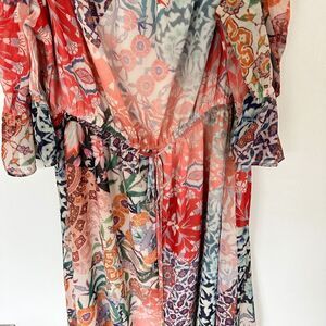 City Chic Adisa Off Shoulder Mixed Media Multi Color Print Shark Bite Hem Dress