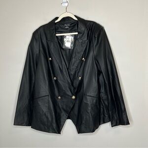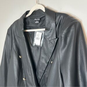 City Chic Black Faux Leather Royalty Double Breasted Blazer Size XL 22 NWT Edgy
