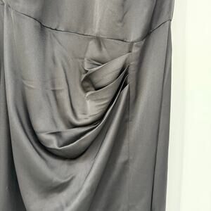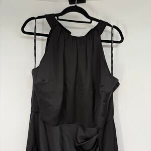 Elegant black maxi dress. Sleeveless design. High neckline. Side slit detail.