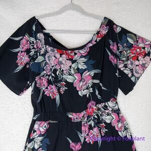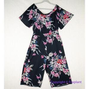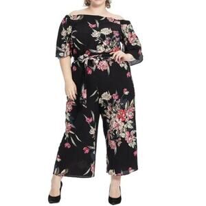 City Chic Black Misty Floral Off The Shoulder Belted Cropped Leg Jumpsuit, size 14