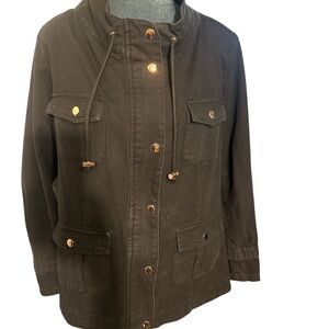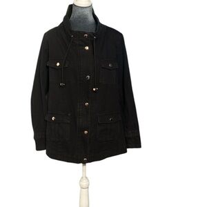 Discover the perfect blend of style and practicality with the City Chic black utility jacket. This piece features a structured silhouette crafted from a medium to heavy weight fabric, ideal for layering in cooler weather. Its classic workwear design makes it a versatile addition to any wardrobe.