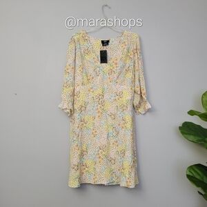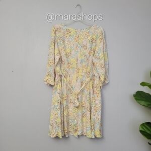 City Chic Bloom Floral Tie Waist Long Sleeve Dress