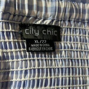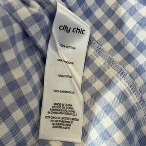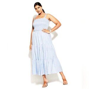 City Chic Blue and White Gingham Tiered Maxi Dress with Smocking Detail – Size XL / 22 – NWOT