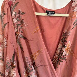 City Chic Boho Floral Maxi Wrap Dusty Rose Dress 24W