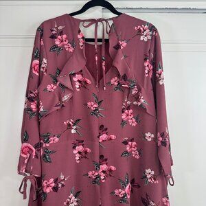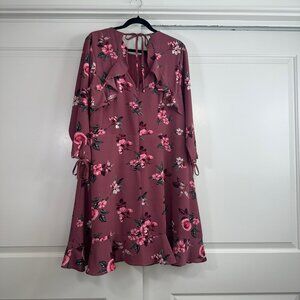 City Chic Burgundy Floral Ruffle Midi Dress