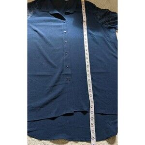 City Chic Button Down Shirt Lacy Hi-Lo Navy Blue Lace Long Sleeve Size 16